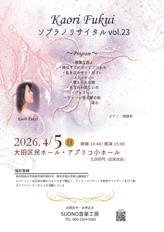 2026年4月5日(日)大田区民ホール・アプリコ小ホール開演:15:00(開場14:40)